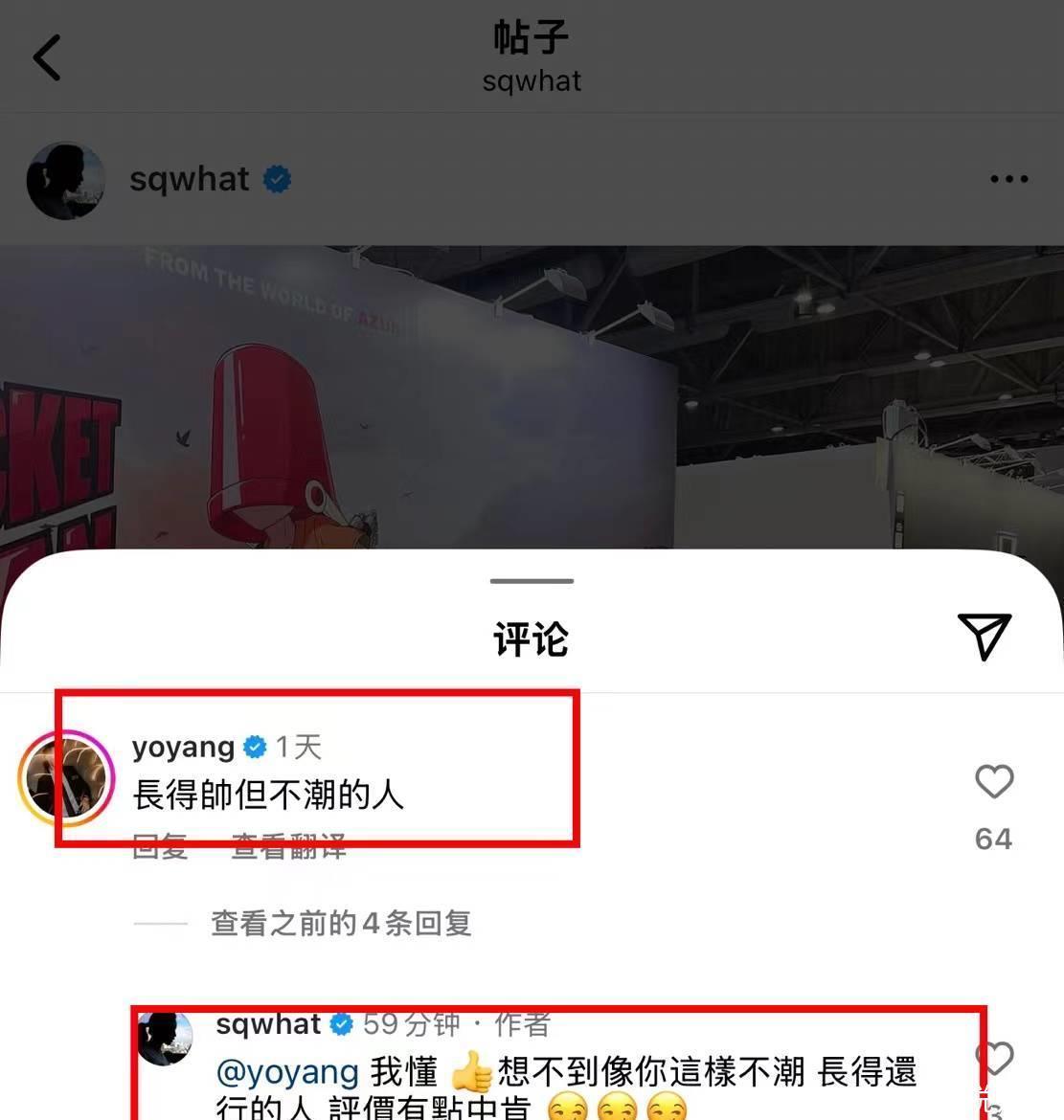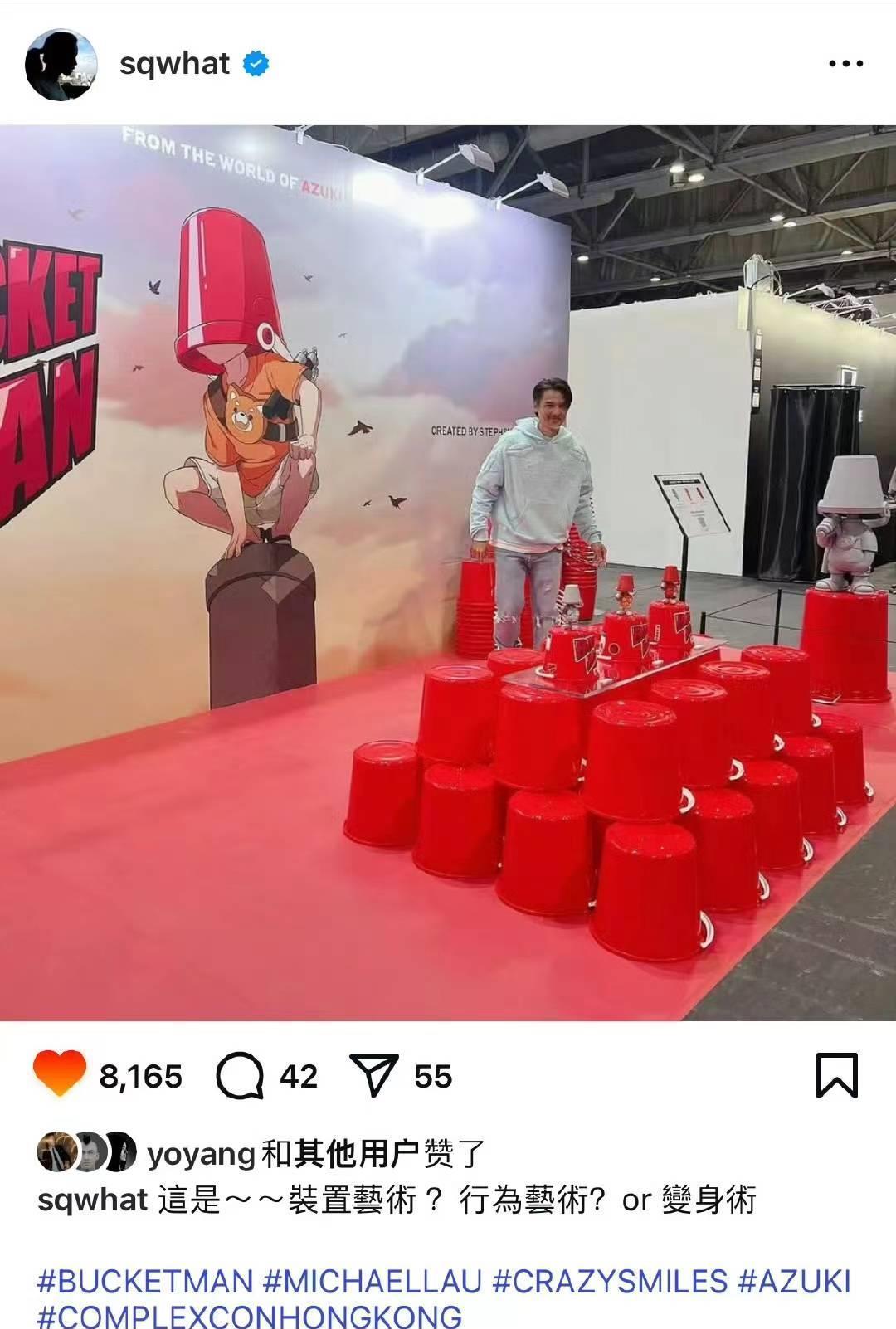 49岁舒淇在社交账号晒出老公冯德伦参加潮流艺术展的照片,想不到杨祐宁评论了。
